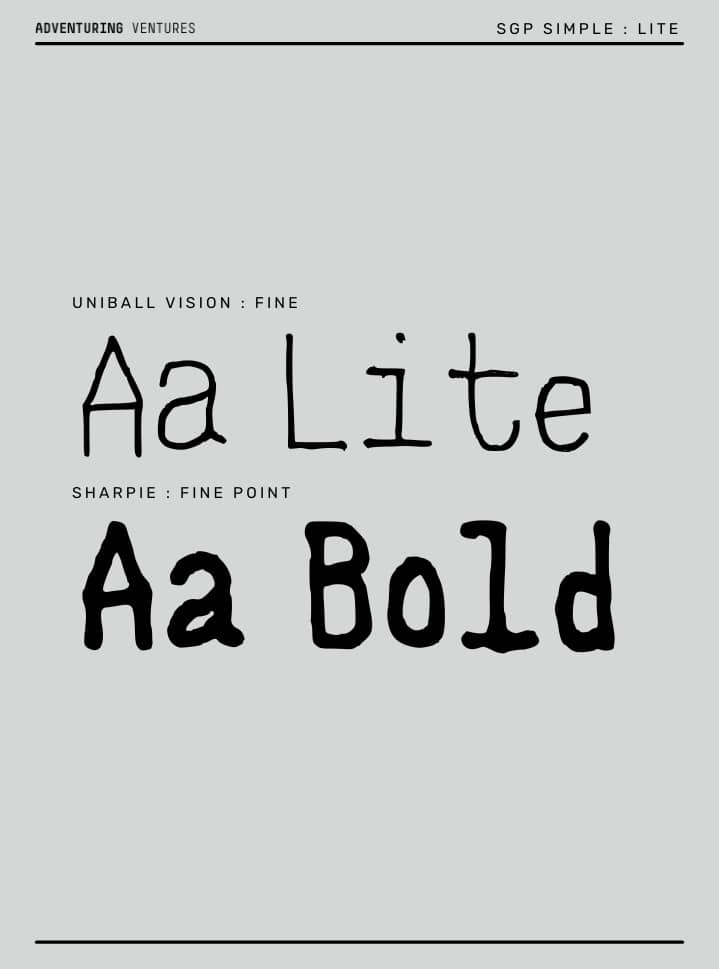 SGP Simple: Scott Patterson of Field Report created SGP Simple as a personal project. It's inspired by a typeface called Simple. It's right at the intersection of old-fashioned meets modern, evoking the feel of writing with a Sharpie. Here's to more handcrafted things in the age of AI.